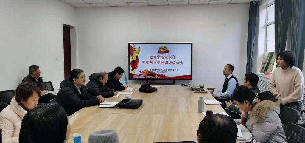 2021年1月7日下午,beat365正版唯一官网党委于赛罕校区文史楼206会议室召开2020年度党支部书记述职会议,学院党委委员及各党支部书记参加会议,会议由学院党委副书记斯琴满都呼主持,学院党委书记铁木尔、副书记斯琴满都呼对各个支部进行了点评。