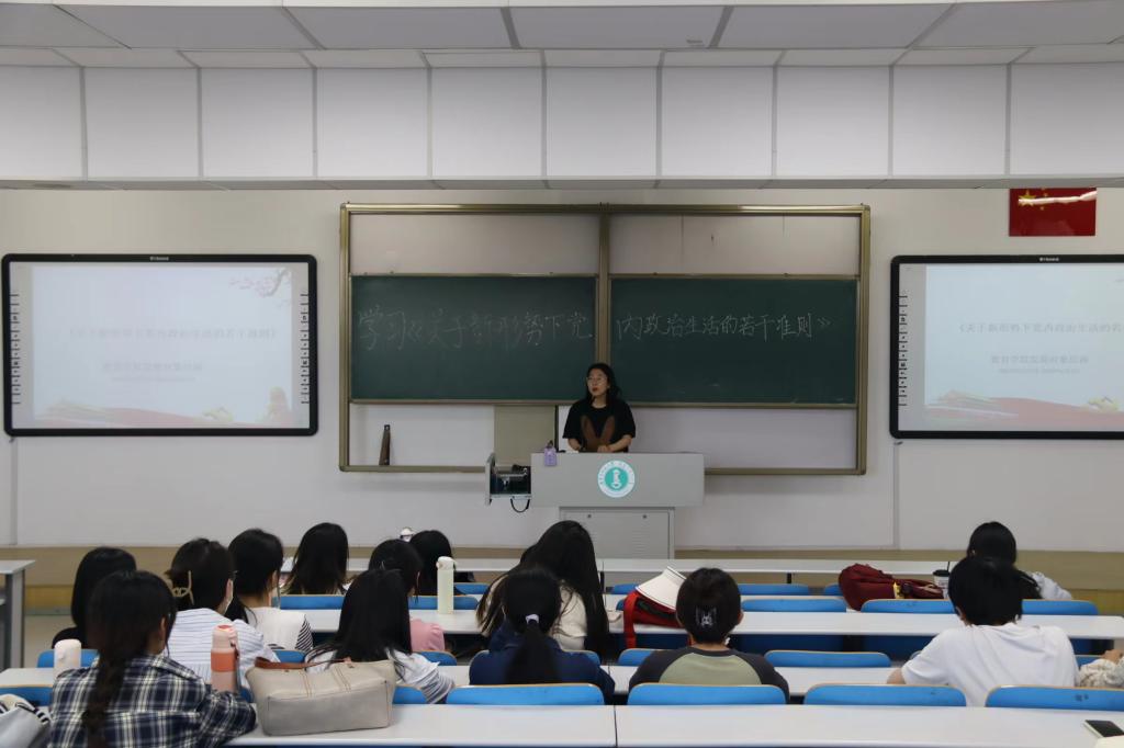 为深入学习贯彻习近平新时代中国特色社会主义思想和党的二十大精神, 依据发展对象培训日程安排,beat365正版唯一官网于6月2日在行知楼210教室开展学习《关于新形势下党内政治生活的若干准则》相关培训,本次培训由张玉老师为大家进行讲解。