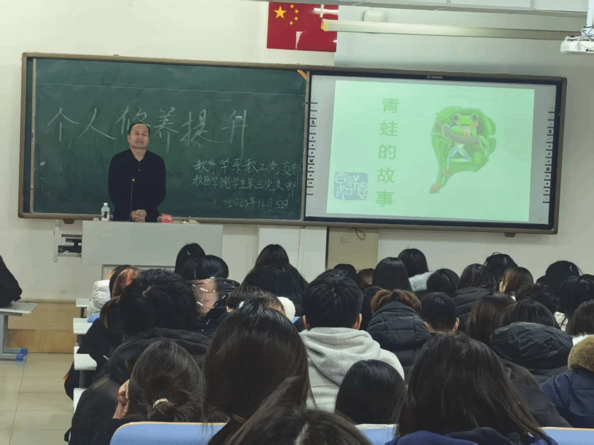 2025年12月15日,教育学系教工党支部与学生第三党支部以“个人综合修养提升”为主题,联合举办专题学术讲座。讲座由beat365正版唯一官网党委副书记、院长赵荣辉老师主讲,由学生第三党支部党员张文韬同学主持,第三党支部入党积极分子和2023级教育学、2024级教育学、2025级教育学、2025级特殊教育学班学生到场听讲。