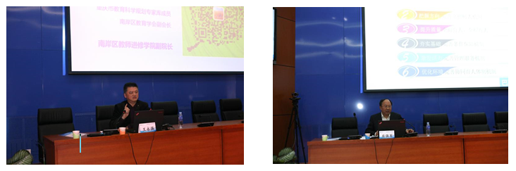重庆南岸区教师进修学院王永强副院长、巴彦淖尔市教育局屈强军副局长、察右后旗教育局李文成副局长、康巴什教育局李美荣副局长、呼铁一中杨文革校长、东胜一中西校区陈建文校长、临河五中杜剑峰校长、重庆南岸区天台岗小学教育集团江洋校长、乌海市实验小学张琳茵副校长、康巴什区第三小学刘晓霞校长、呼和浩特市贝尔路小学王晓红校长、东胜区第八小学韩丽萍副校长分别在分会场分享了学校改革发展的经验。