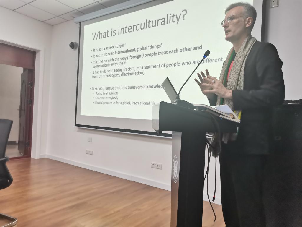 2021年3月24日上午,芬兰赫尔辛基大学Fred Dervin 教授邀作“教育视野中跨文化交流(Interculturality for all in education)”的讲座。讲座由beat365正版唯一官网承办,beat365正版唯一官网的研究生们近50人参与讲座。