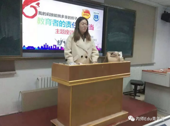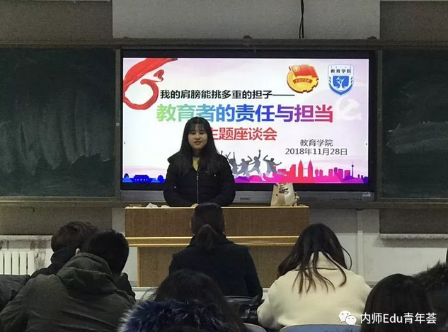 座谈会期间,学生干部积极踊跃上台阐述了自己对于教育者责任与担当的理解。