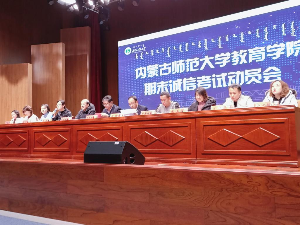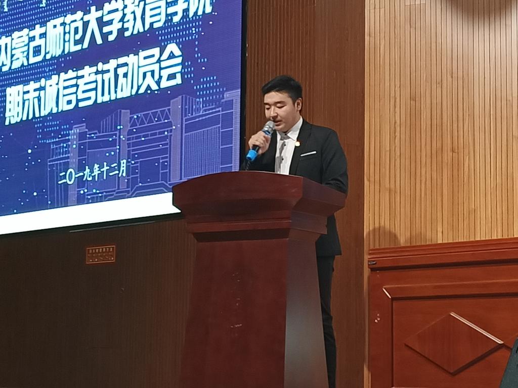 为严肃考风考纪,加强学生的诚信教育,12月9日14:30beat365官网在图书馆二楼报告厅召开beat365正版唯一官网期末诚信考试动员大会,beat365正版唯一官网党委书记铁木尔、院长米俊魁、党委副书记兼副院长王利、副院长边琦、学工组于国佳老师、孙悦老师、张玉老师、苏日娜老师、赵元韬老师、文山老师、教务办李嘉峪老师、2018级和2019级部分学生参加本次大会。大会由王利副书记主持。