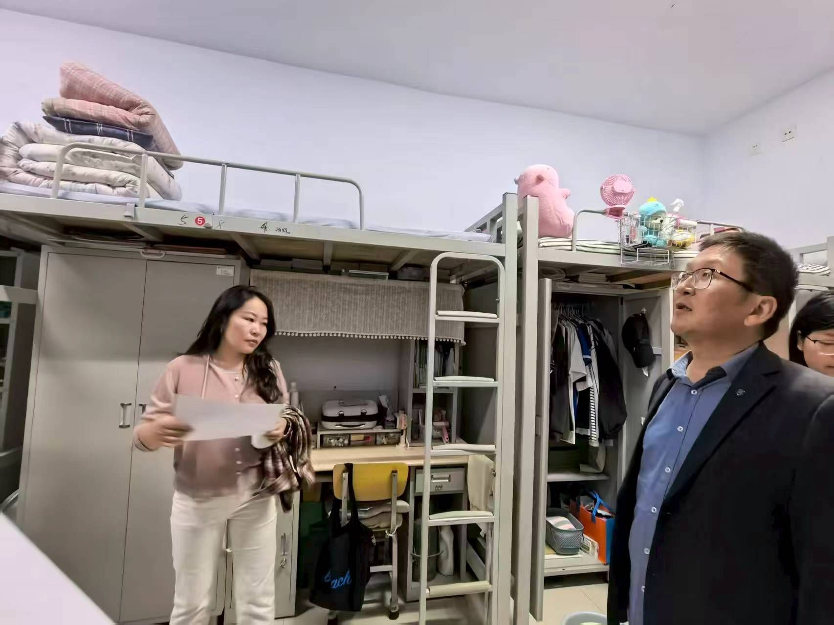 检查组老师和学校安管会同学对每一间宿舍安全情况进行了仔细排查并做好相关记录。此次检查,除了宿舍安全之外老师们对学生们的课余生活也进行了亲切的问候与关怀。整个检查过程的氛围轻松愉快,检查细致入微。大部分同学宿舍安全意识很高,宿舍内没有安全隐患,宿舍环境整洁干净,居住环境适宜。但也有宿舍安全意识较低的学生,存在宿舍内养宠物、使用违禁电器等情况。学院对此类学生进行批评教育并令其整改。学生已明确认识到自己的错误,并承诺整改,保证该类事情不再发生。