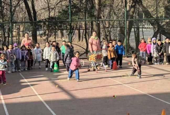 当日早上7:30 ,学生们从盛乐校区出发,8:50在实践教学负责教师于洋以及青年教师孙广颖的带领下进入内蒙古农业大学附属幼儿园。在内蒙古农业大学附属幼儿园,学生们分别观摩了幼儿园的体育教学活动与网球特色活动。体育活动中,孩子们在教师引导下进行基础体能训练,通过游戏化教学培养协调性与团队协作能力。网球课程则采用趣味化设计,教师用彩色球拍和软式网球激发幼儿兴趣,学生们结合所学知识,观察幼儿运动发展特点,深入理解健康教育活动设计课程内容。一位参与学生表示:“这种将专业运动低龄化的教学方式,让我意识到学前教育需要兼顾安全性与趣味性。”