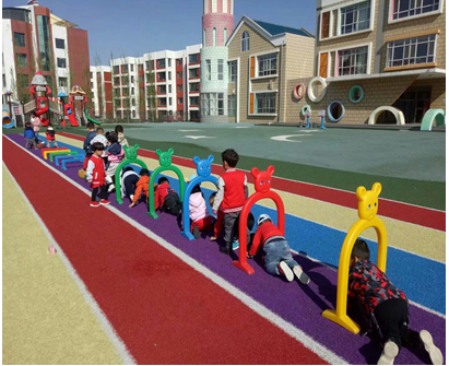 阳光明媚的早晨,吃过早点后孩子们出来进行锻炼。爬山洞,过小溪,跨高山~