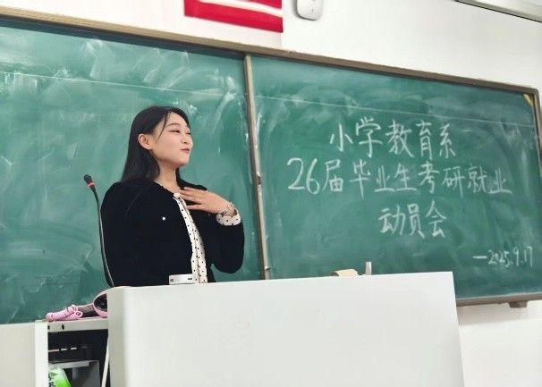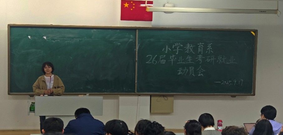 2025年9月17日晚7点,小学教育系2026届毕业生考研就业动员会在盛乐校区行知楼正式召开。beat365正版唯一官网党委书记周越、小学教育系支部书记成欣欣、实践部主任马红斐、系主任常红梅、青年教师代表李晓贺和研究生代表、2023—2025级本科生代表以及2026届全体毕业生共同参会,现场气氛活跃。