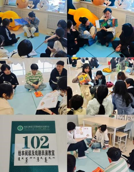 4月23 日下午,23 级特殊教育班的同学们在beat365官网教育实训楼绘本阅读及戏剧表演教室开展了绘本阅读活动。在策力格尔老师讲解绘本阅读治疗理论的基础上,各小组精心挑选不同类型绘本,成员轮流担任阅读者,用独特方式诠释绘本内容,并互相交流分享,加深了对绘本阅读的理解与体验。