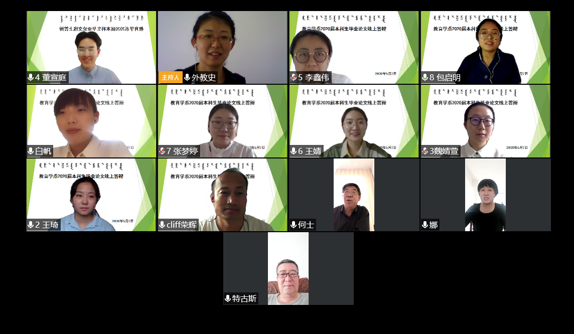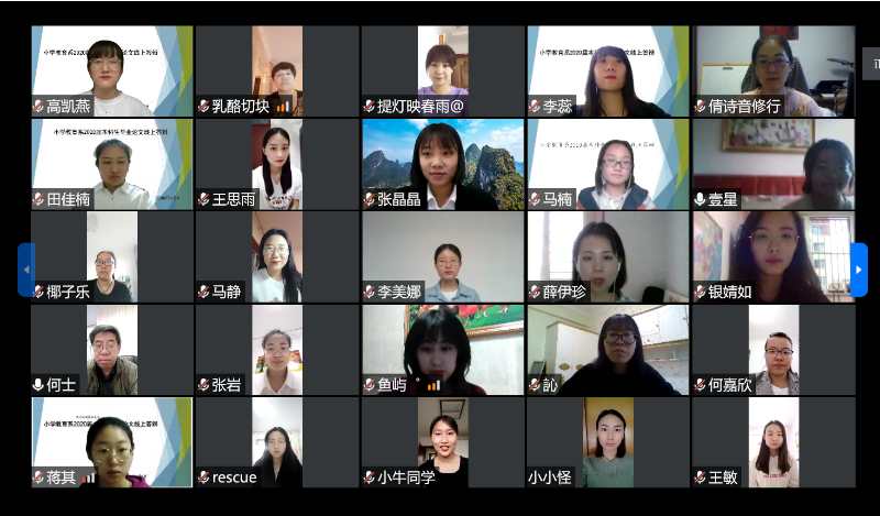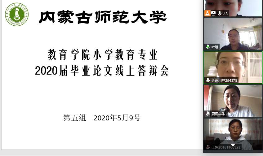 根据学校疫情防控期间毕业生相关工作要求,beat365正版唯一官网2020届本科毕业生进行在线论文答辩。教育学、学前教育、教育技术、小学教育、特殊教育和公共事业管理等专业在57日到59日三天陆续举行答辩会,先后有570余名本科毕业生参与答辩。
