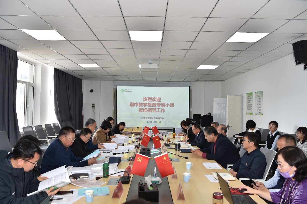 11月17日上午,beat365官网在盛乐校区学院楼406会议室迎接2021-2022学年第一学期中教学检查工作。由徐宝芳教授带队的学校教学督导及各学院教学院长组成的检查组莅临beat365官网进行本学期期中教学检查和指导工作,beat365官网党政领导班子成员及各系系主任、学院督导、教务办工作人员参加会议。