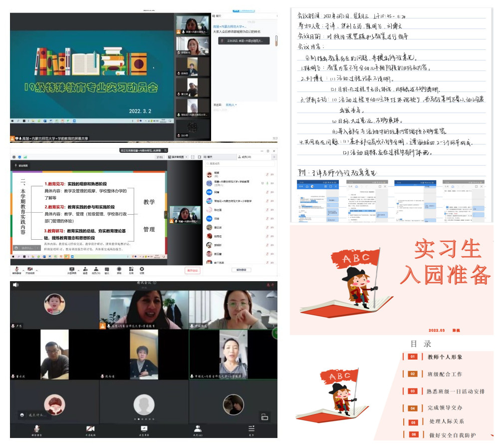 小学教育专业根据学院的统筹安排,将实训与实习整合,召开线上实习动员大会,鼓励因疫情无法参与双选实习的同学联系就近实习,完成实习前的第一轮线上教学模拟实训任务。本周已有26名学生开始入校实习,同学们正在逐渐适应新环境,学院老师通过电话、微信、平台等多种形式,指导实习,加强疫情期间校外安全教育和健康教育;特殊教育专业组织学生开展线上实习动员会,就实习地点,跟课时间、实习进程、报告撰写、考核方式等方面对学生进行全面细致的讲解;学前教育专业展开线上校内课堂模拟教案指导。邀请幼儿园教学园长陈巍做实习入园讲座。