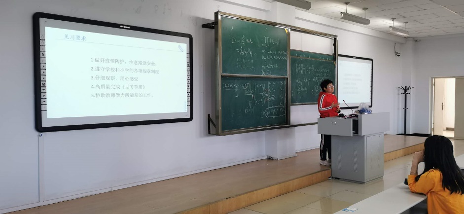 9月17日下午,同学们于行知楼221参加了见习动员会。会上实践教育部马红斐老师为同学们分析了教育见习的作用和意义,介绍了见习学校的基本情况,提出了见习的要求和安全注意事项,解读了见习手册中的任务内容。第一周见习的同学还领到了见习证。大家对自己的见习生活也充满信心。