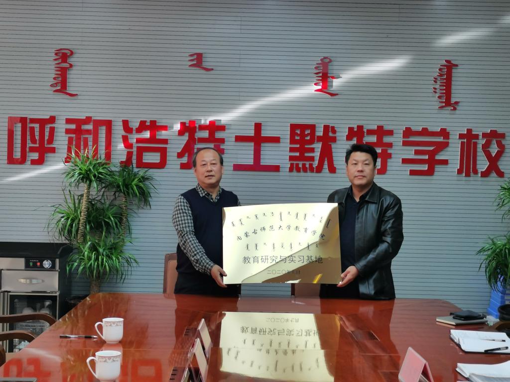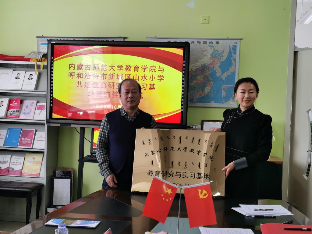 beat365官网院长米俊魁教授与呼和浩特山水小学副校长格根苏布达签约并授牌