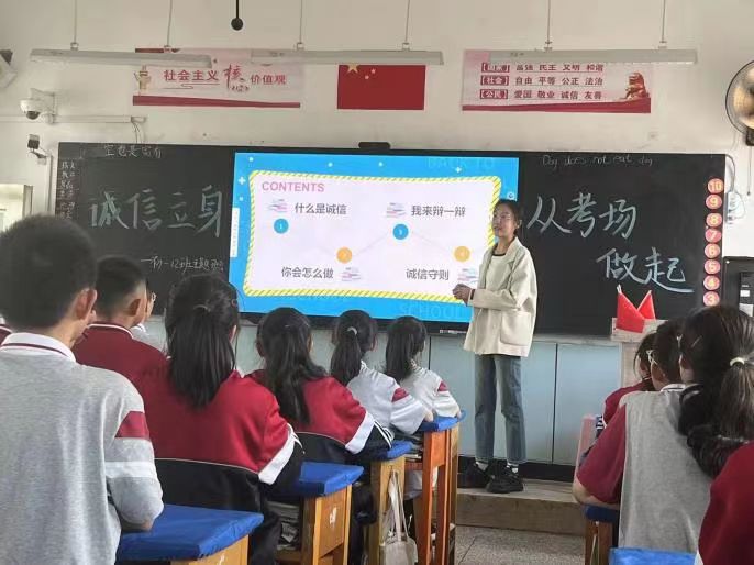2020级屈敬学同学于考试前夕召开“诚信立身,从考场做起” ,以及父亲节之际召 开“爱在父亲节”主题班会。在班会中她摒弃寻常做法,采取独特的辩论形式,让孩子们在“辩中求进步”。