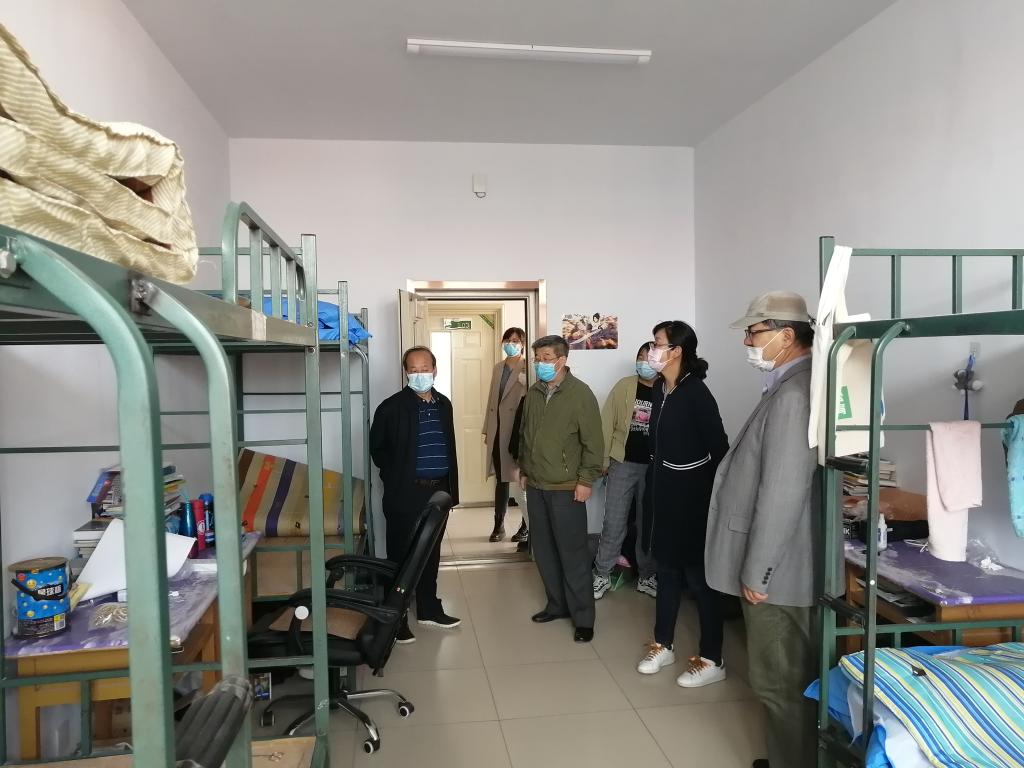 5月11日下午,beat365正版唯一官网进行学生返校复学前宿舍安全大检查,为学生返校复学做好准备。beat365正版唯一官网党委书记铁木尔、院长米俊魁、党委副书记副院长王利、副院长何士、副院长边琦、辅导员老师于国佳、孙悦、张玉、赵元韬、薛亚琼和苏日娜参加了此次检查工作。