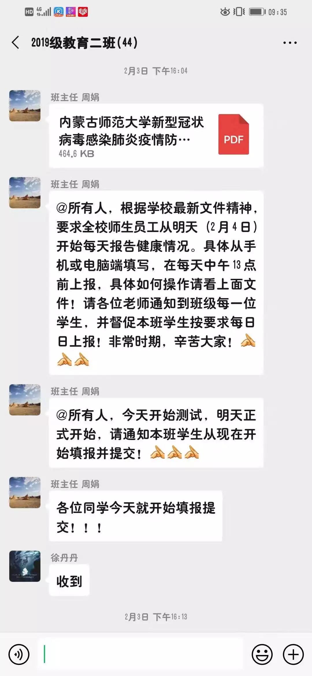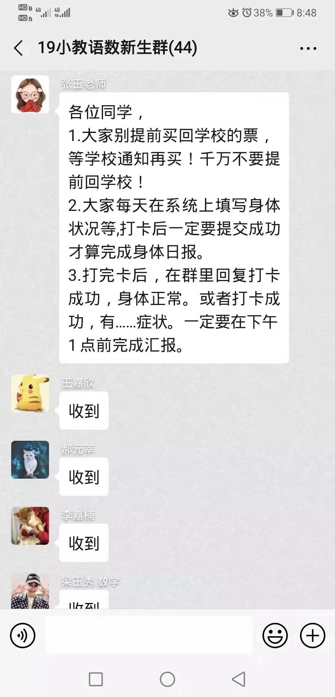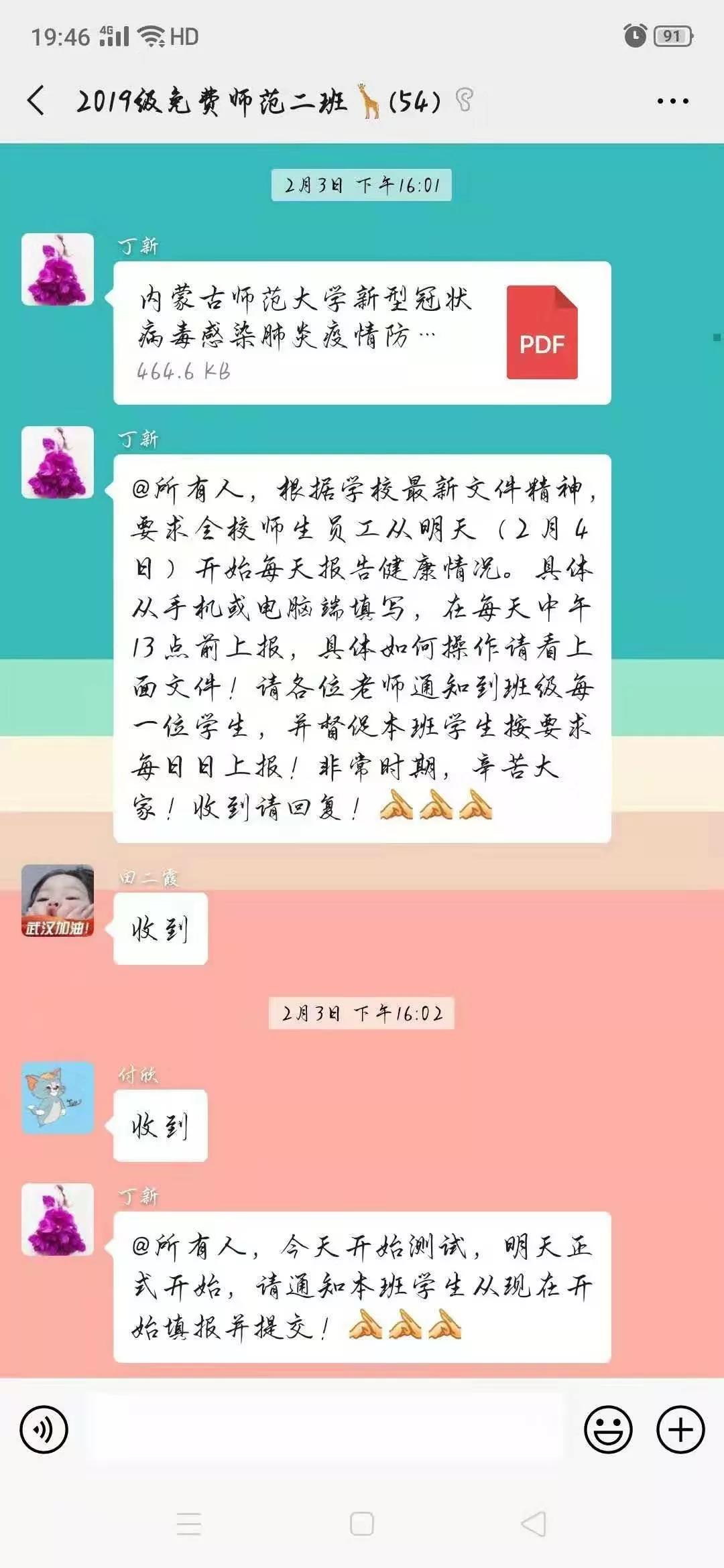 2020年在一场战“疫”中拉开帷幕,武汉成了全国乃至全球人最关注的一座城市,抗击疫情,刻不容缓。为贯彻落实自治区防疫最新要求和学校最新文件精神,切实做好防疫工作,beat365正版唯一官网认真执行“每日一报”打卡制度,全体师生按时填写提交“健康状况日报”,准确做好信息统计和信息上报工作,齐心协力防疫抗疫,以实际行动表明坚决打赢这场战争的决心,充分体现了beat365官网对疫情防控工作的高度重视。
