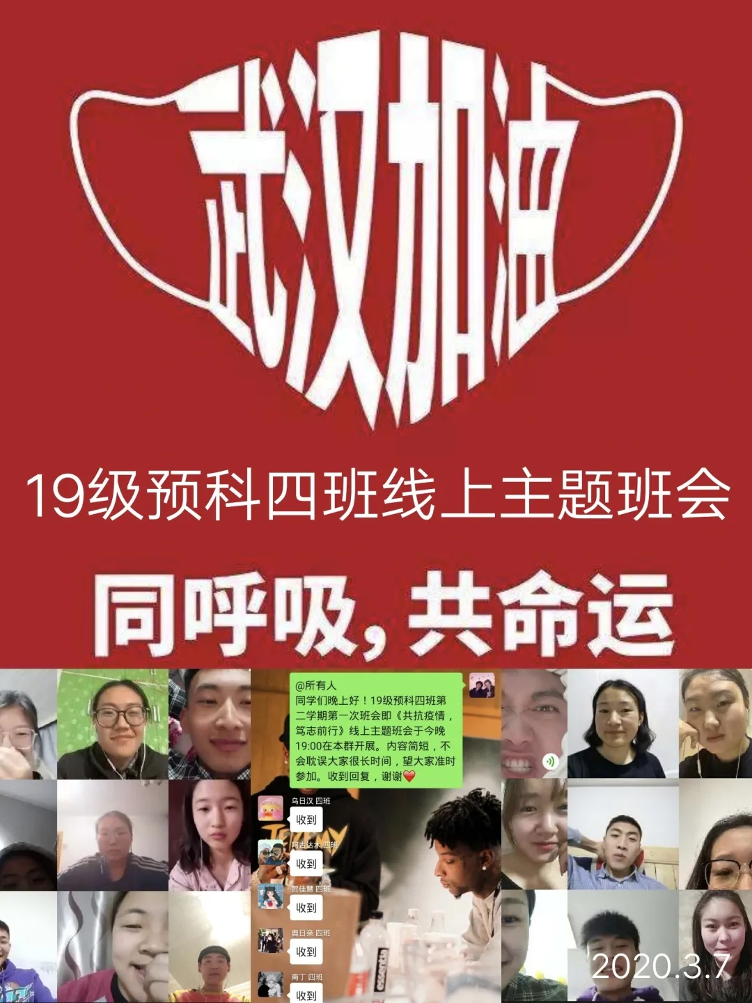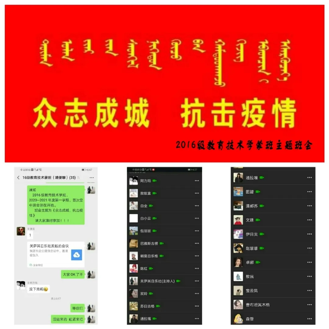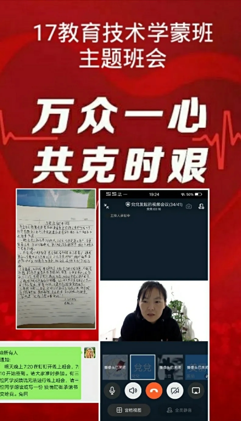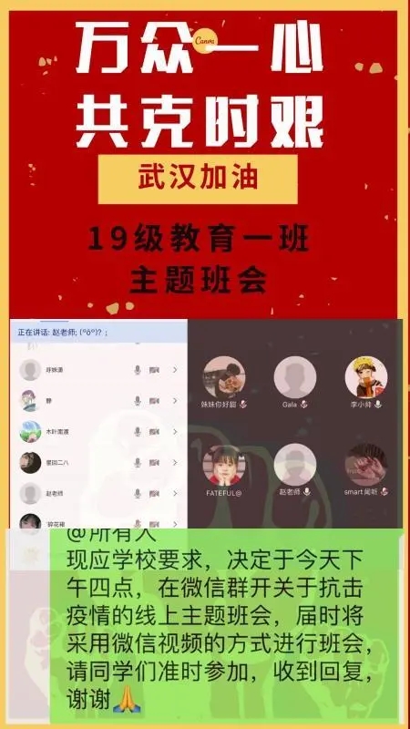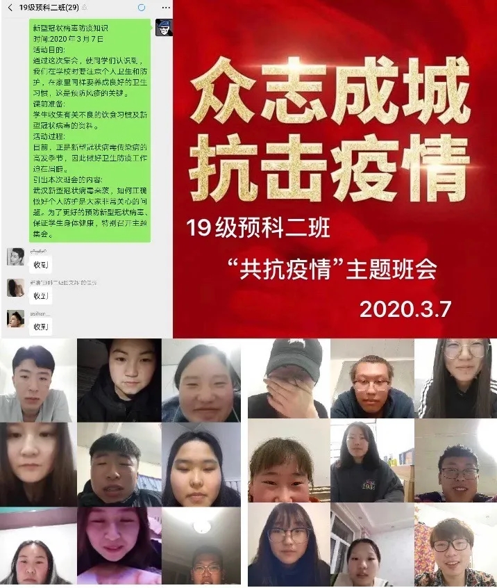 为深入贯彻落实习近平总书记关于打赢疫情防控阻击战重要指示批示精神,保障防控疫情期间“停课不停学”,充分发挥网络育人功能,根据自治区和学校有关工作部署,beat365正版唯一官网各班级组织召开“共抗疫情,笃志前行”为主题的疫情防控线上班会。