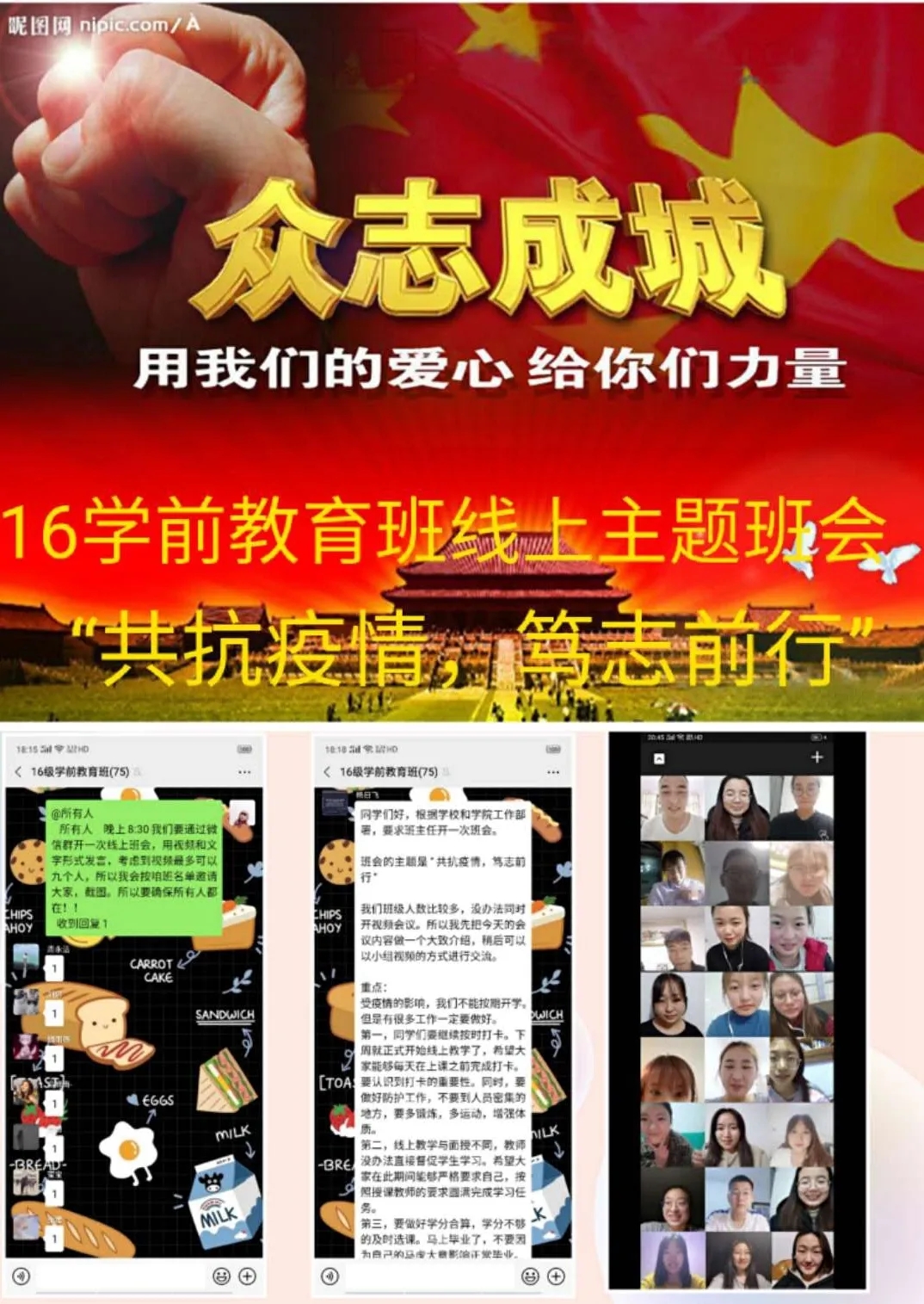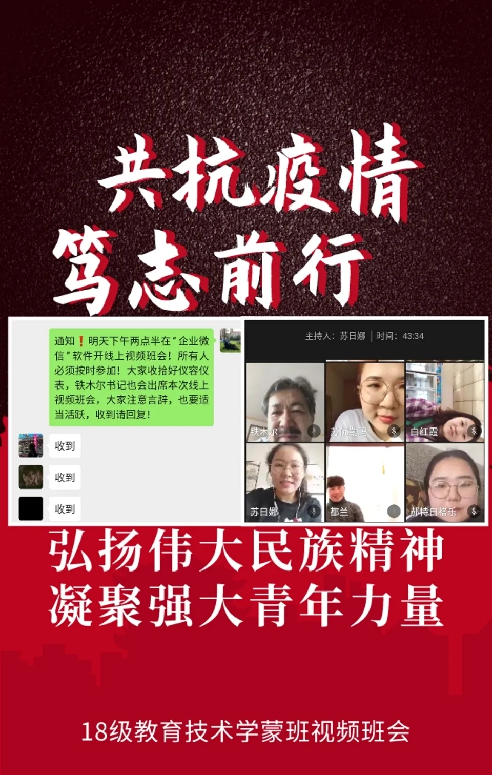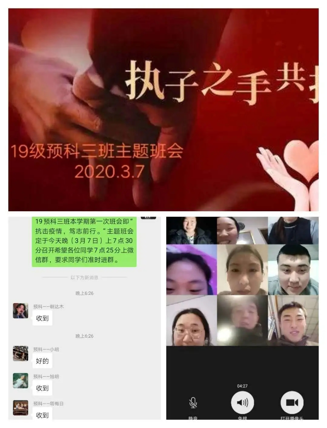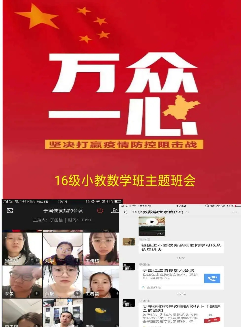 为深入贯彻落实习近平总书记关于打赢疫情防控阻击战重要指示批示精神,保障防控疫情期间“停课不停学”,充分发挥网络育人功能,根据自治区和学校有关工作部署,beat365正版唯一官网各班级组织召开“共抗疫情,笃志前行”为主题的疫情防控线上班会。