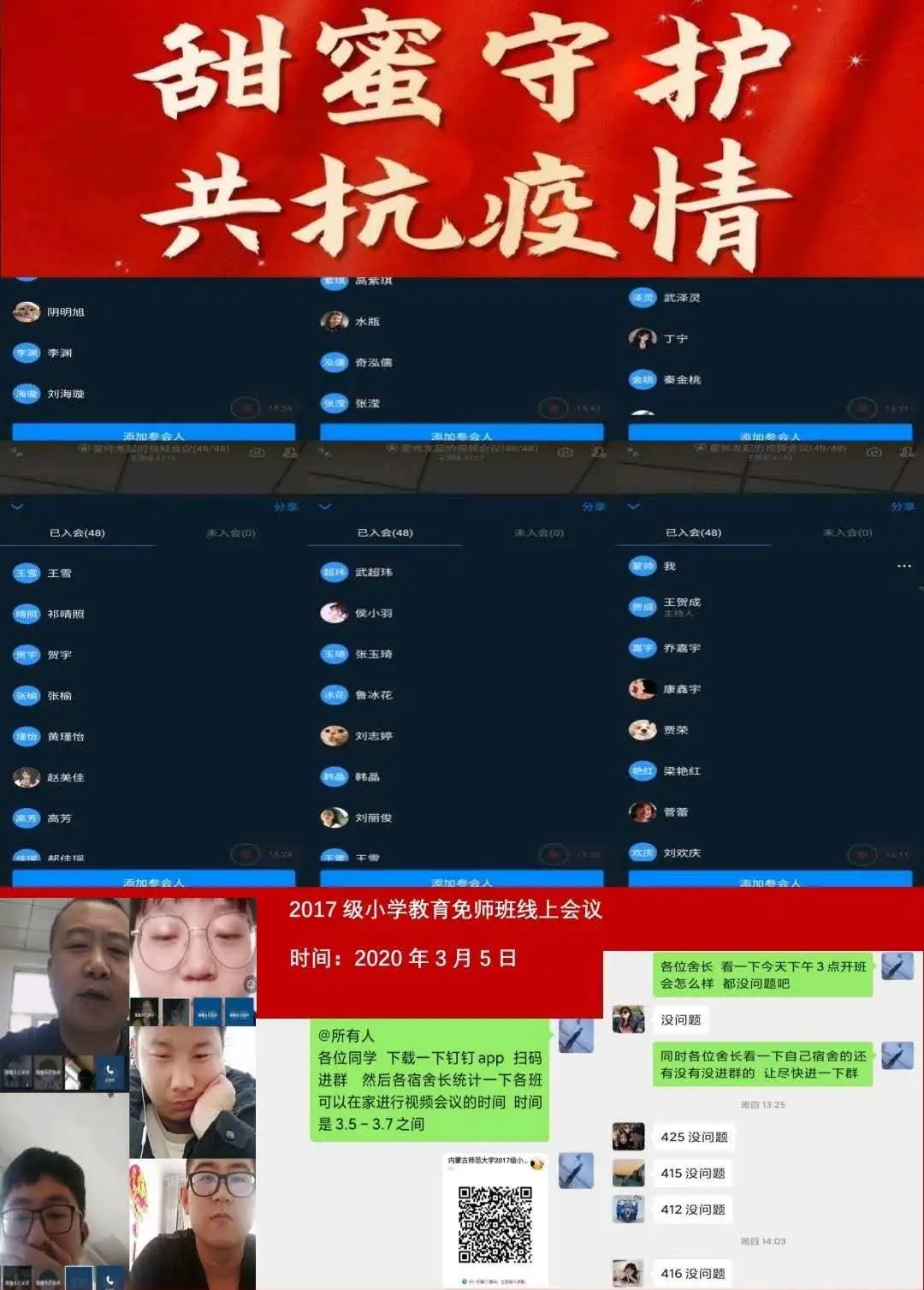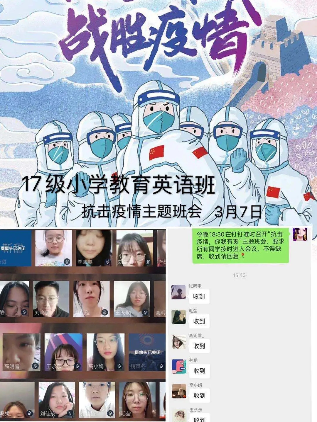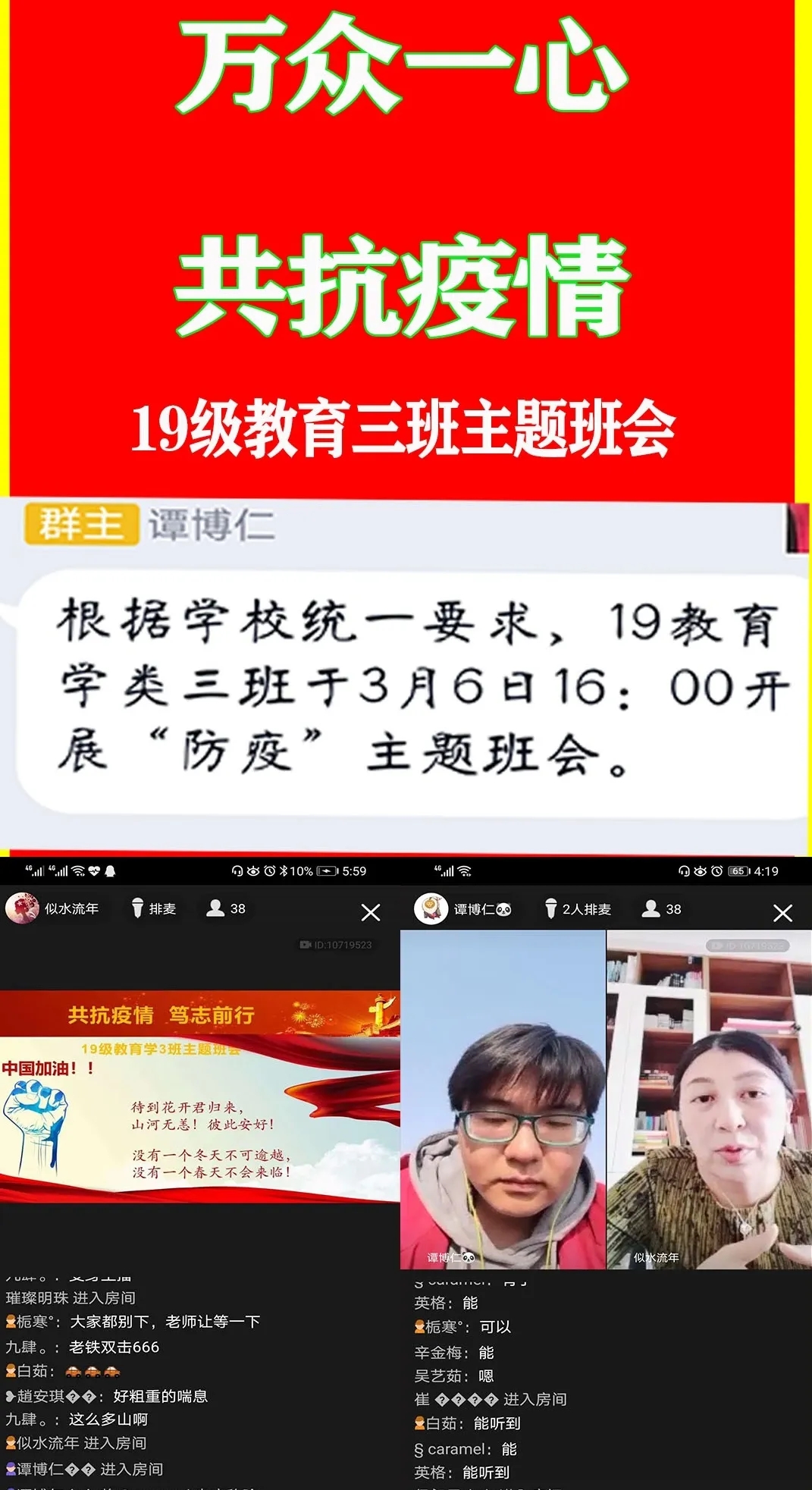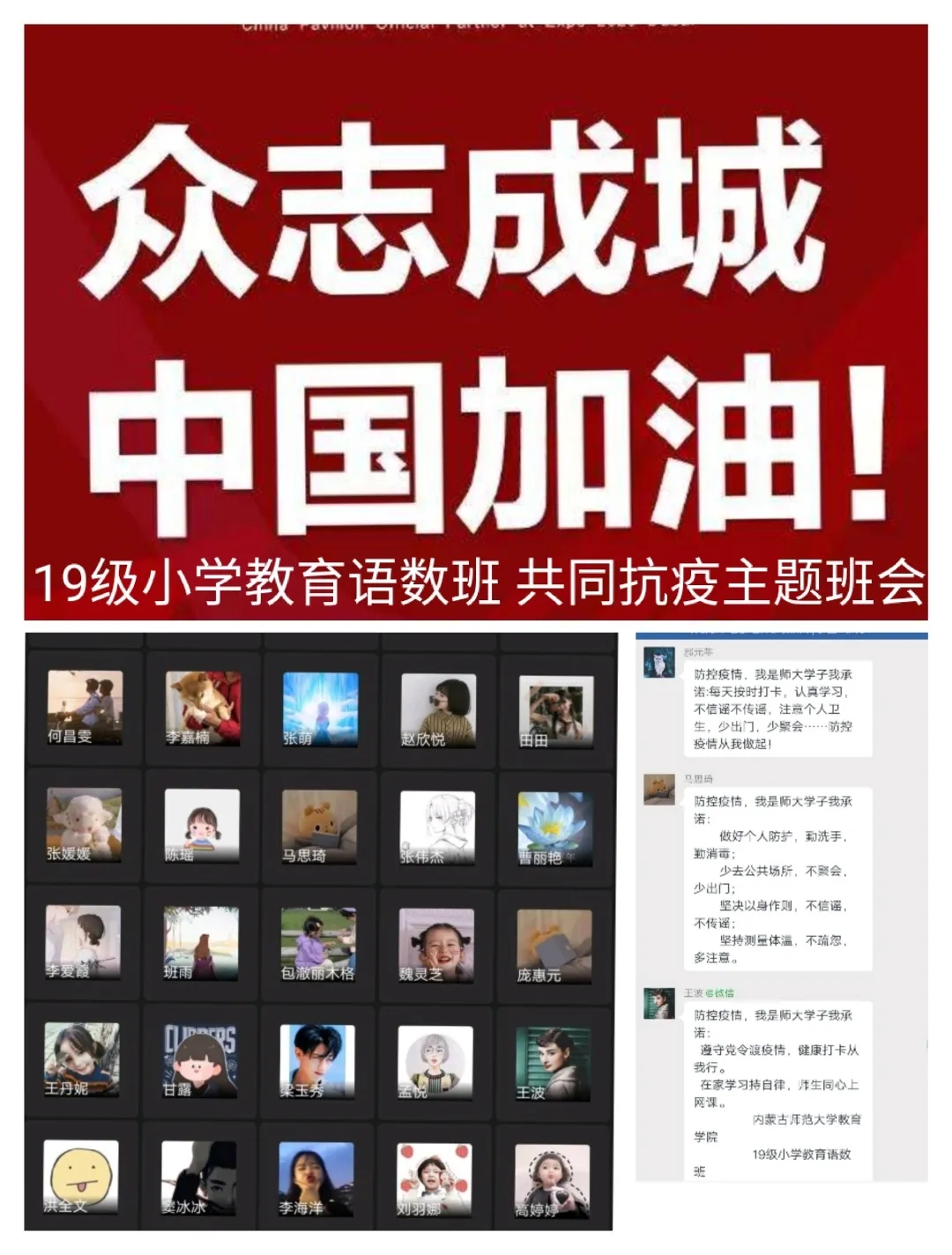 为深入贯彻落实习近平总书记关于打赢疫情防控阻击战重要指示批示精神,保障防控疫情期间“停课不停学”,充分发挥网络育人功能,根据自治区和学校有关工作部署,beat365正版唯一官网各班级组织召开“共抗疫情,笃志前行”为主题的疫情防控线上班会。