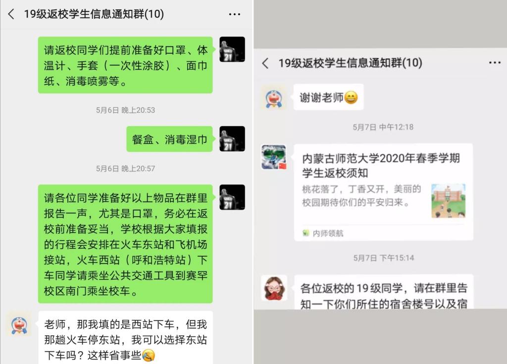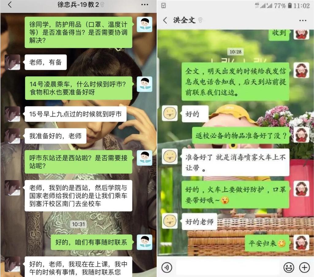 在迎接学生返校复课的过程中,学院辅导员和返校学生建立了一对一的联系,关注学生返校前的行程、个人信息、个人防护准备等情况。为切实保障返校学生的生命安全和身体健康,学院还为返校的同学和湖北籍的同学准备了消毒用品和防护大礼包,让同学们安心返校,安全上学。