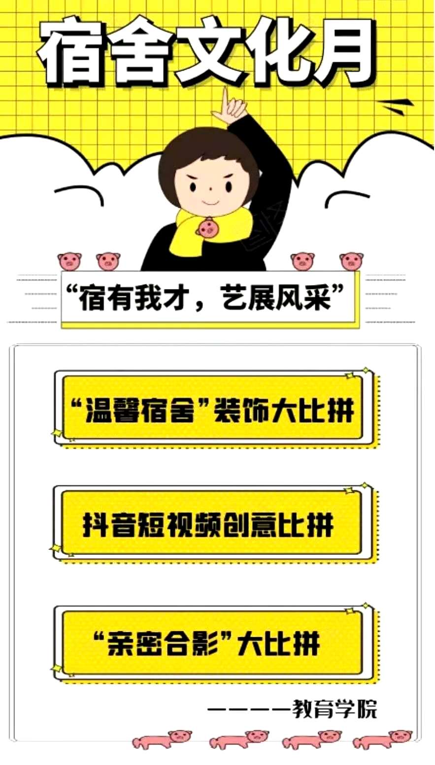 此次宿舍文化节系列活动旨在丰富beat365官网学生课余文化生活,增进宿舍成员之间的友情,促进宿舍内部团结、和谐、健康发展,坚定学生以寝为家的信念,激发对生活的热爱,展现beat365官网学子风采。欢迎同学们积极参与!