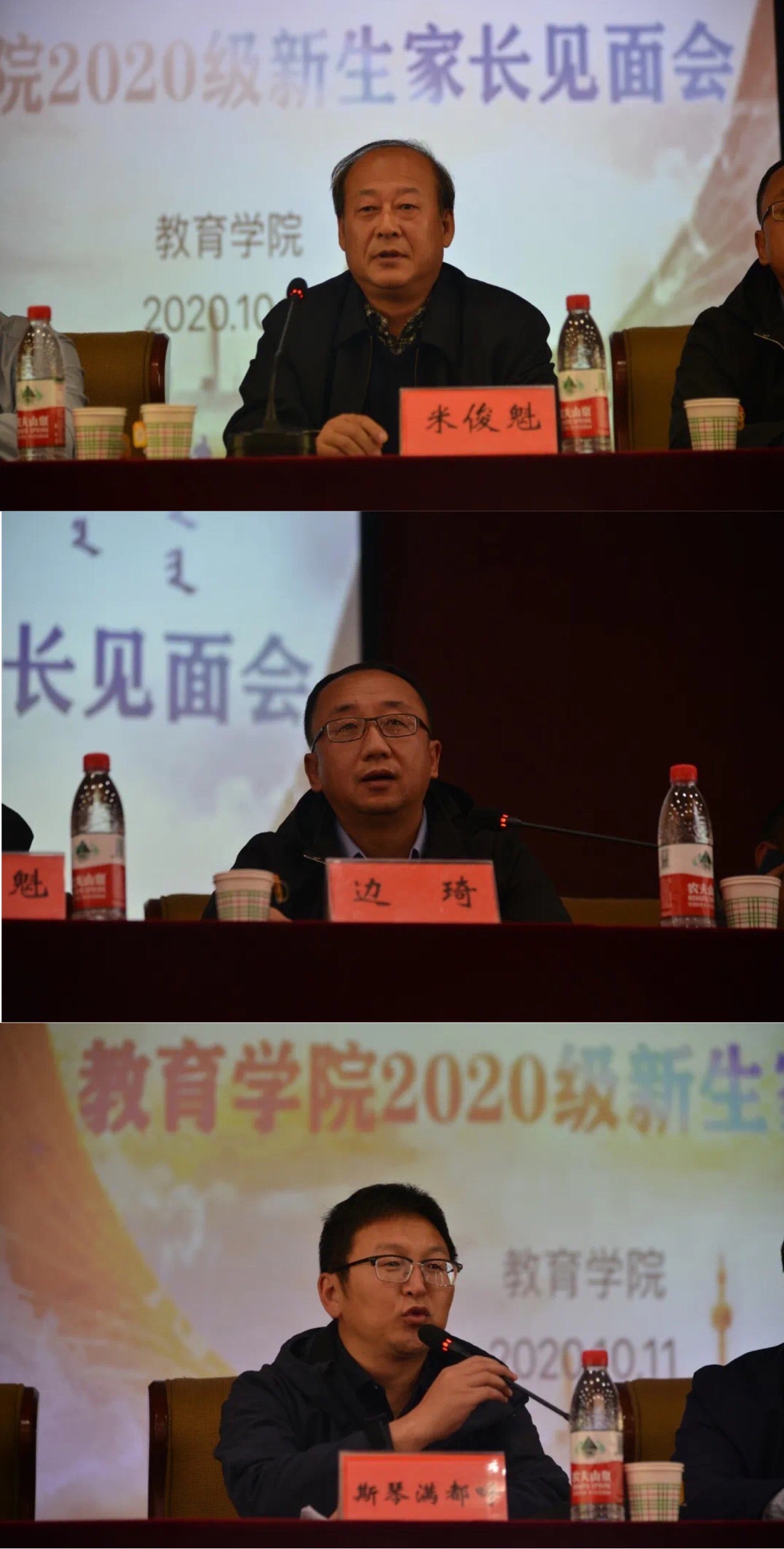 米俊魁院长介绍了学院的发展情况,包括重要学科、人才培养范围以及专业就业前景;边琦副院长详细地介绍了教育学科具体内容,让家长对孩子所学知识有大体了解,并提出期许,希望家长理解配合,支持高等教育;斯琴满都呼副书记介绍了近期学生们的日常安排以及军训的相关事宜,对宿舍环境的整改问题做出说明,并承诺学校将会在近期尽快完善,希望家长们对此予以理解,积极配合学院工作。在答疑环节,学院领导、老师们认真详细地对家长们困惑的问题进行了解答。