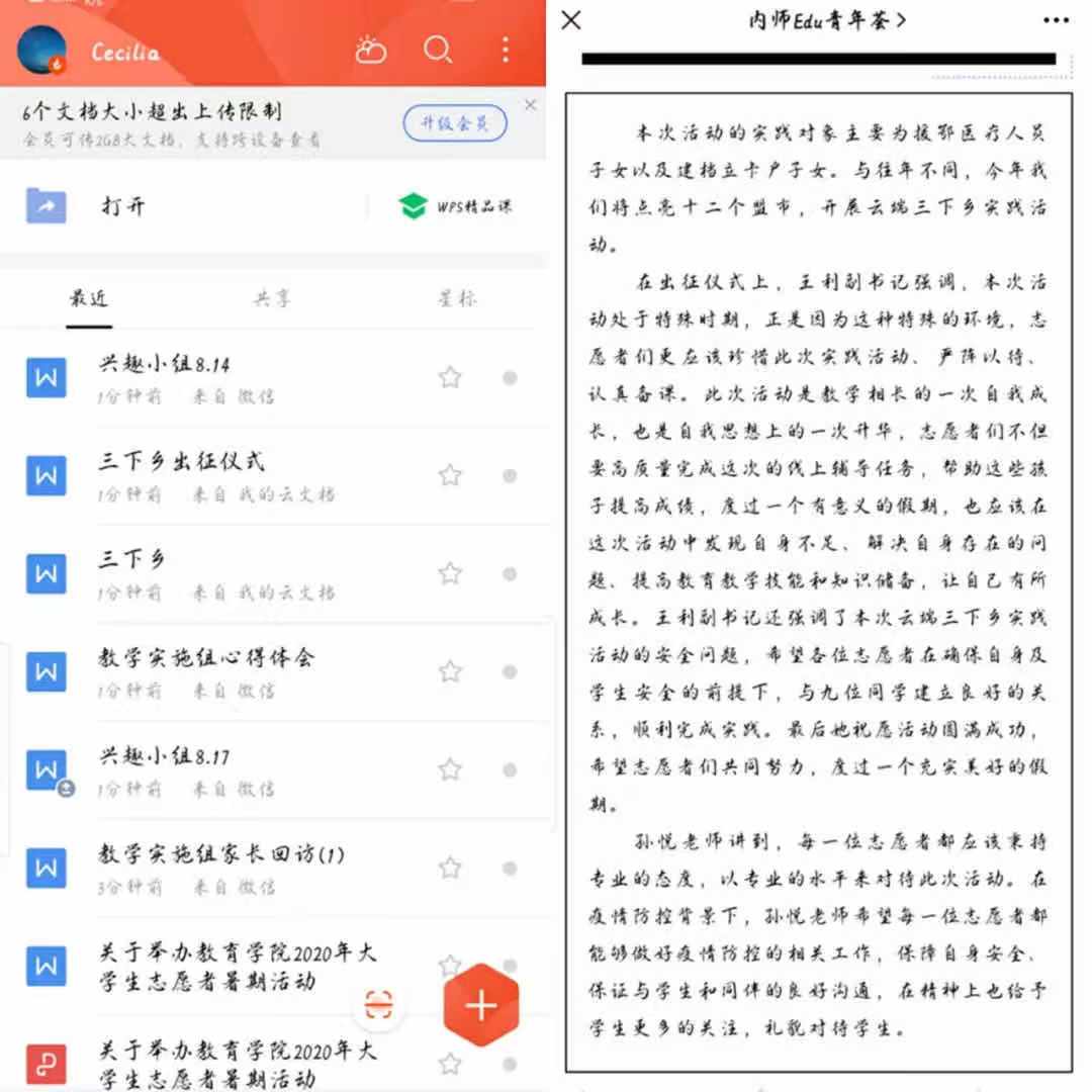 我的主要工作是将当天的三下乡活动内容做成推送进行宣传报道。