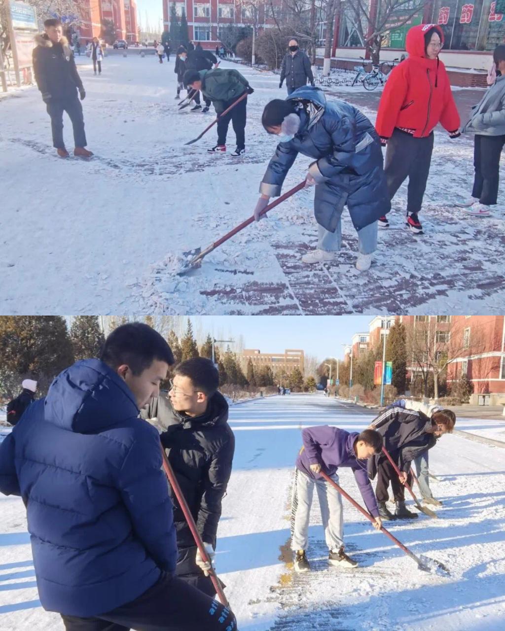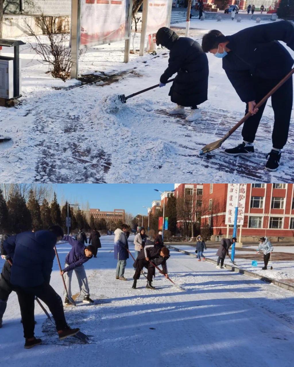2020年11月21日,一场冬雪让师大的校园内银装素裹,分外美丽。为确保师生校园内交通安全,出行畅通,11月22日,beat365正版唯一官网组织2020级各班学生及学生会成员对群鸿餐厅周围积雪进行清扫。