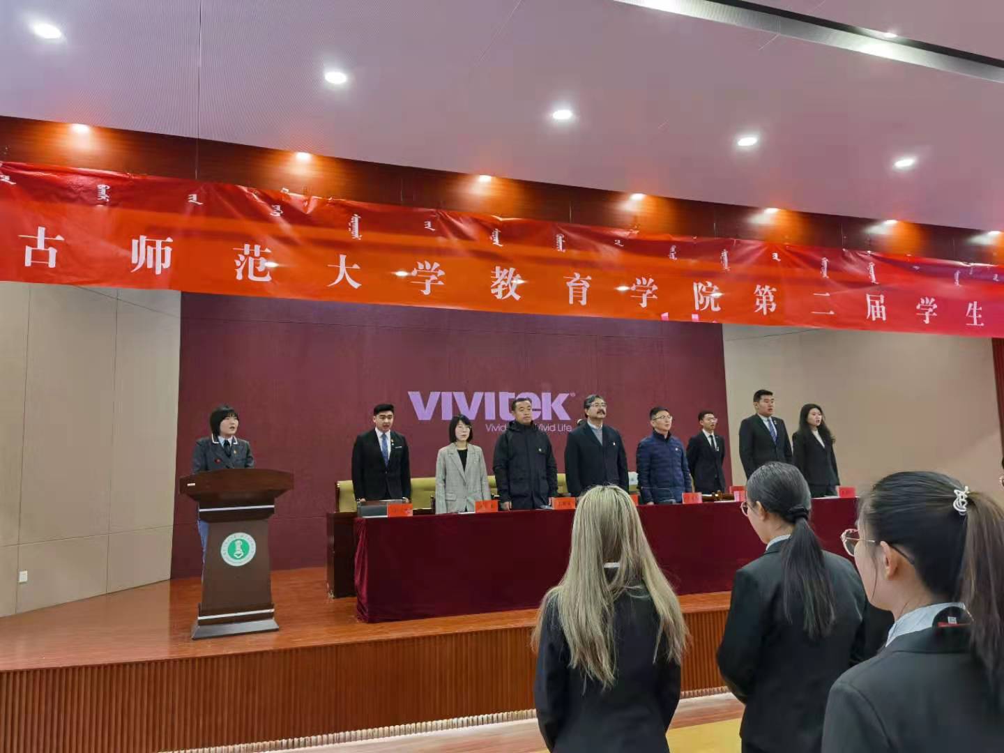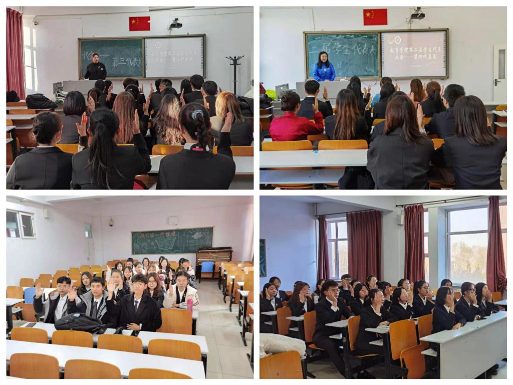11月28日上午9:30,beat365正版唯一官网第二届学生代表大会在科技楼一楼报告厅正式举行。beat365正版唯一官网党委书记铁木尔、副书记、副院长斯琴满都呼、学就办副主任于国佳老师、团总支副书记孙悦老师、学工组张玉老师、苏日娜老师,学生会主席团五位成员:阿诺、赵重阳、刘莹娜、李镕、陈鹏出席会议。会议由孙悦老师主持。