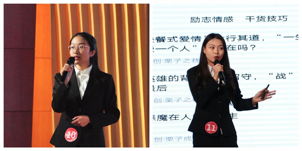大赛总成绩包含职业生涯规划书成绩和现场展示环节成绩两部分,参赛选手通过PPT 展示、视频制作、才艺展示等环节从“自我认知、环节分析、目标定位、职业决策、计划实施、评估调整”等方面分享个人职业生涯规划。参赛选手慷慨激昂、从容自信的阐述了职业规划蓝图及实现路径,将自身的性格特点、技能特长与社会需求相结合,展示了当代大学生昂扬的精神风貌和过硬的素质能力,赢得了阵阵掌声。