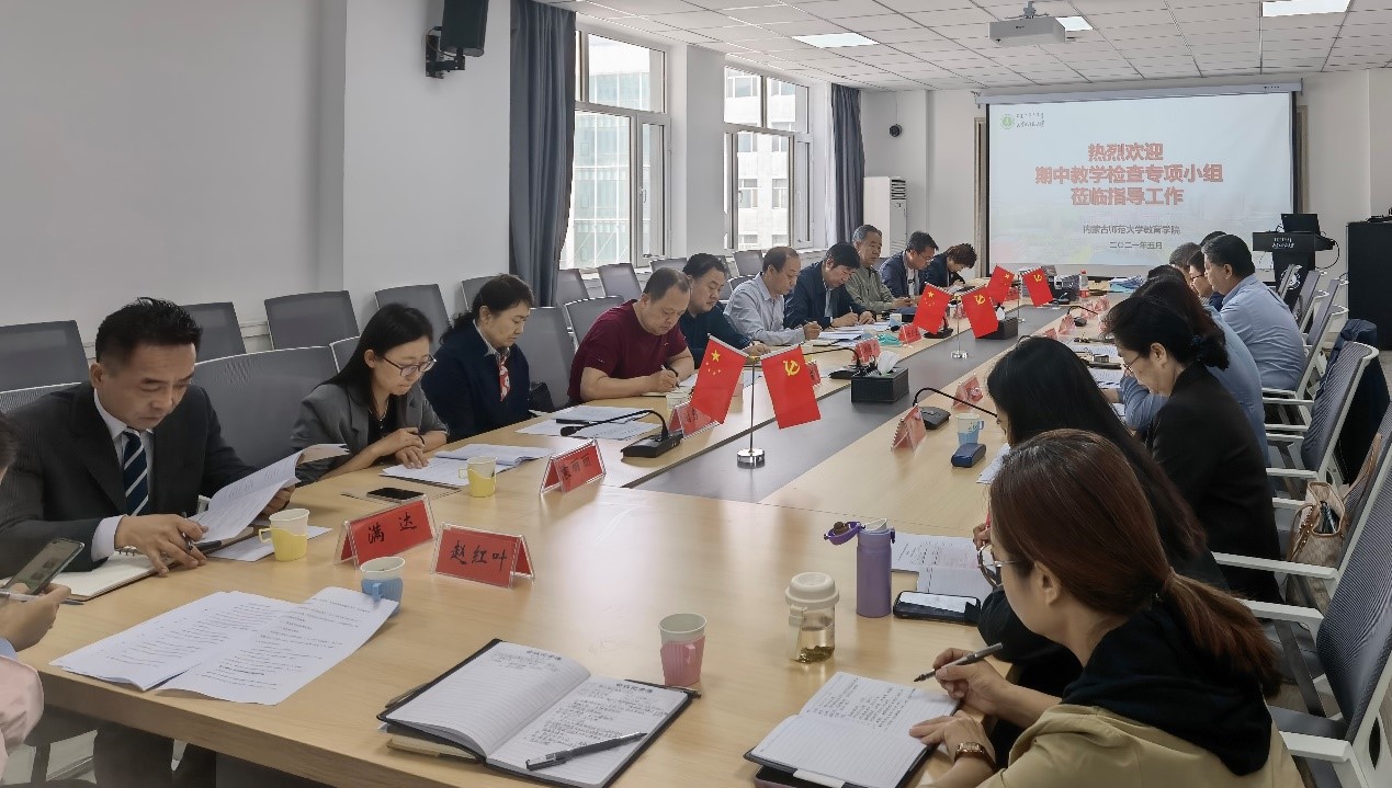2021年5月18日上午9时00分,学校期中教学检查组专项检查1组甘月文、田阳荣、郝保文、萨楚尔夫、汪子云、闫秀琴、袁丽丽、满达、那日苏、张晓阳、赵红叶等一行十一人在学院楼A406会议室开展beat365正版唯一官网本科期中教学检查工作。beat365正版唯一官网党委书记铁木尔、党委副书记兼副院长斯琴满都呼、教学副院长边琦教授,以及何士、于晶、朱晓红、陶格斯等学院教学督导和系主任参加会议,教务与科研办公室李嘉峪、茶娜、乌亚汗、王娟等负责材料与记录。