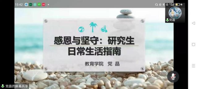 党晶博士依据自己的学习经验,为beat365官网研究生提供了详细且全面的学术生活指南,从感恩出发,构建自己的积极情绪、促进自我成长、处理与导师和同学的关系。引导同学们明白了每学期的目标,搭未来收获学术成果之路。