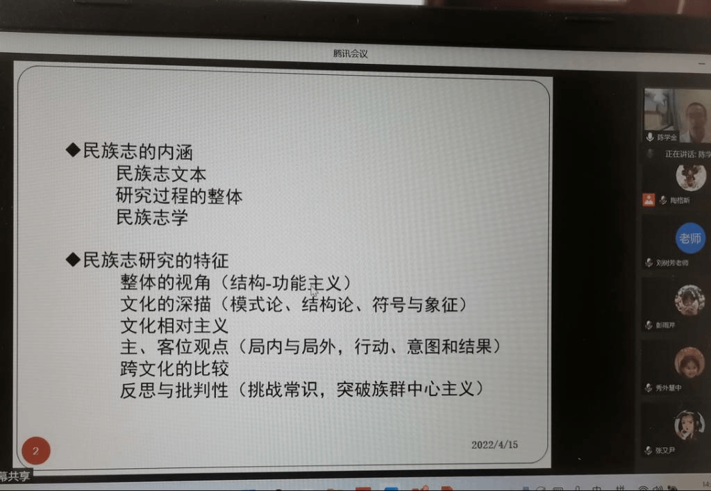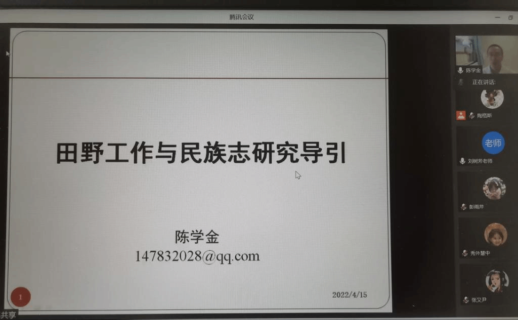 2022年4月15日,beat365官网邀请北京市社会科学院社会研究所副研究员陈学金博士作题为《田野工作与民族志研究导引》的学术讲座。陈学金博士对民族志的内涵、特征、不同学科民族志研究的异同、民族志和田野工作之间的关系进行探讨,在并结合三案例,围绕田野工作开展的方式方法、研究问题的凝练、文本的架构、理论的探讨与分析等多方面内容进行了深入阐述。讲座由beat365正版唯一官网陶格斯博士主持,本校民族教育学、课程与教学论等专业的研究生和本科生及校外师生参加。提问与交流环节中,陈学金博士推荐了人类学方法论的书籍,并分享了读书、写文章的方法与经验。