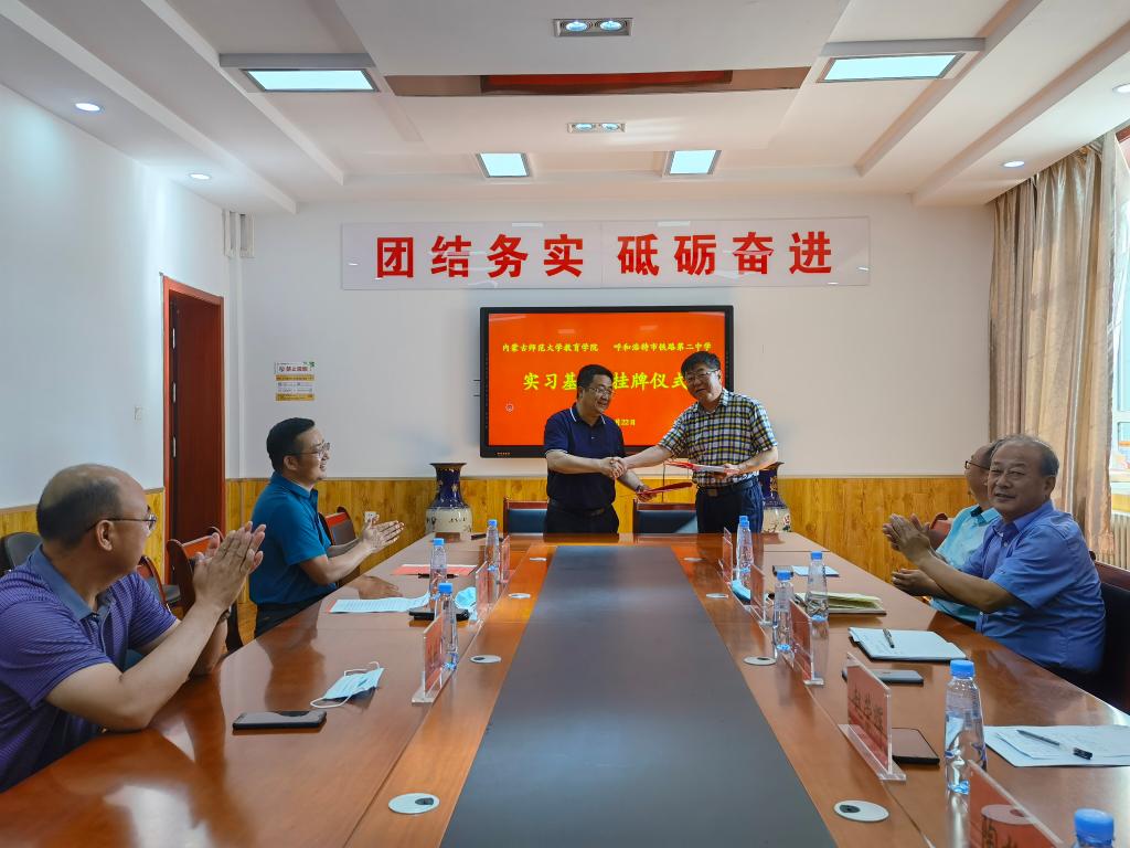 2022年6月22日下午,呼和浩特铁路第二中学与beat365正版唯一官网共建教育实践基地协议签约仪式在呼和浩特铁路第二中学举行,beat365正版唯一官网党委副书记、院长米俊魁,beat365正版唯一官网党委书记周越,beat365正版唯一官网副院长边琦、赵荣辉,教育学系主任陶格斯,beat365正版唯一官网副教授郑珠,beat365正版唯一官网综合办公室依波勒,呼和浩特铁路第二中学校长刘丰,副校长陈晓峰、韩利峰参加了此次活动。签约仪式由呼铁二中副校长韩利峰主持。