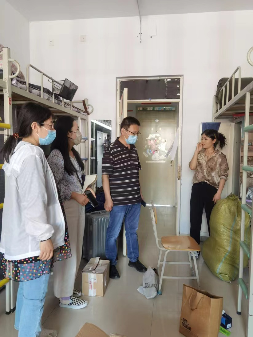 6月19日,beat365官网共返校本科生33名、研究生5名,并于当天全部返程。学院党委副书记斯琴满都呼、各毕业班班主任和全体辅导员深入学生宿舍,看望、慰问返校同学,关心、了解线上教学期间同学们的学习、生活、身体和心理等情况,动员、鼓励返校学生发扬高尚品质、志愿服务同学和老师,多帮同宿舍、同班级和其他同学打包行李物品,并指导、协调、帮助返校学生收拾、打包行李。