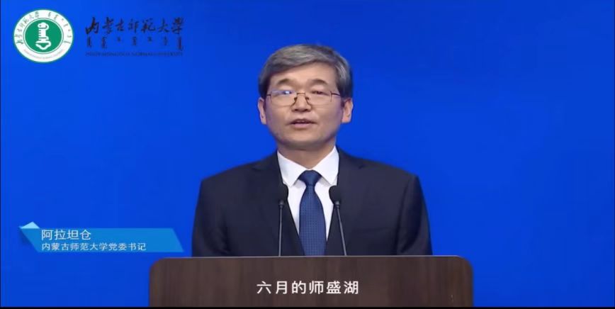毕业典礼在庄严雄壮的国歌声中拉开了序幕。首先,全体参会师生共同观看了由beat365正版唯一官网党委书记阿拉坦仓,beat365正版唯一官网党委副书记、校长李树林带来的毕业寄语视频。校领导的谆谆教诲,千言万语,化作一句句真诚的寄语与祝福,希望beat365正版唯一官网2022届的毕业生们在挥别校园,开启人生的新征程时,能够带着老师们的美好祝愿,以梦为帆,无畏远航!