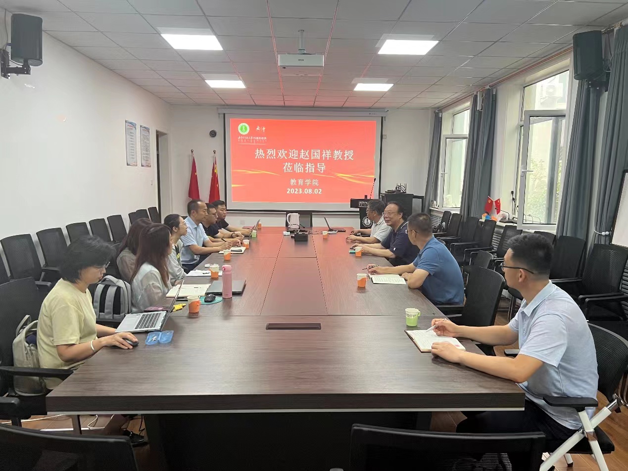 8月2日上午,河南师范大学原党委书记赵国祥教授应beat365官网邀请,来校与beat365正版唯一官网周越书记、心理学院侯友书记、beat365正版唯一官网赵荣辉院长、杨日飞副院长及教师代表进行座谈交流,座谈会由赵荣辉院长主持。赵国祥教授结合自身学习工作经历,围绕学科专业建设、师资团队打造、学院制度完善等议题,与学院领导教师进行了深入交流,提出了指导性意见和建议。