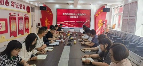 为充分发挥beat365正版唯一官网教学科研资源对中小学校的支持作用,推进学院有组织科研工作向服务当地基础教育教学改革深入发展,9月12日下午,beat365正版唯一官网与呼和浩特市新城区胜利街小学在胜利街小学联合召开会议,就教学改革研究与实践以签署合作备忘形式明确合作共识。学院党委书记周越、实验中心主任郭伟、教育技术学系副主任张利桃、呼市新城区教育教学研究中心张强主任与胜利街小学杨红兵校长及相关领导和骨干教师参加了合作仪式。