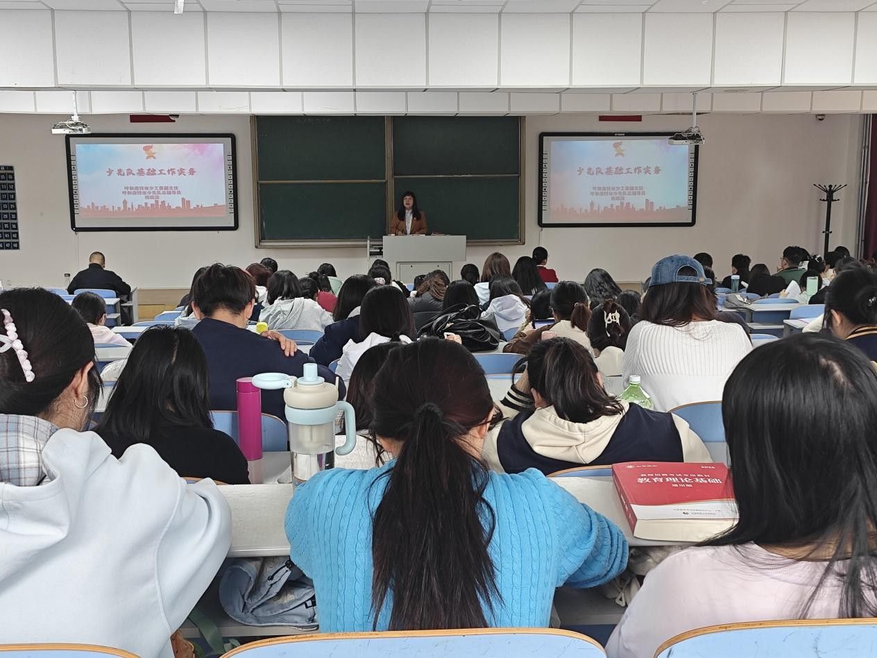 2025年10月9日下午,呼和浩特市少先队总辅导员、玉泉区教育局党组成员、区教育教学研究中心主任杨瑞清老师受邀来到beat365官网,为师生们带来了一场主题为“少先队基础工作实务”的专题讲座。beat365官网2022级小学教育专业本科生、2025级小学教育专业硕士研究生、少年儿童组织与思想意识教育专业全体研究生参加本次讲座学习,讲座由王春华老师主持。