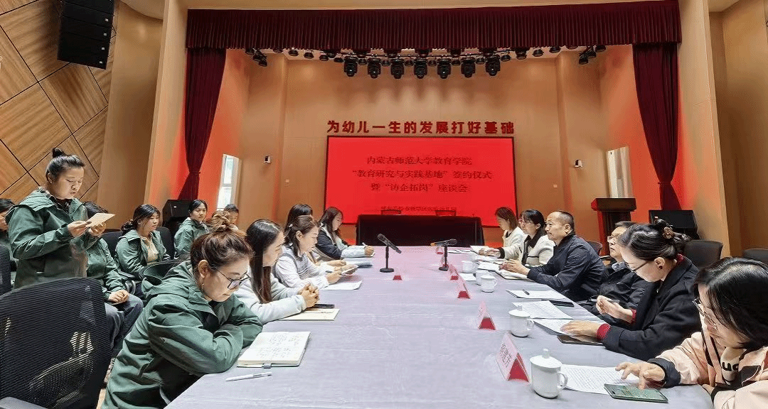 本次座谈会旨在打通高校人才培养与一线用人单位需求之间的通道,构建“培养—输送—成长”一体化育人机制。会上,赵荣辉院长围绕beat365正版唯一官网学科建设、人才培养特色以及学前教育专业优势等进行了重点介绍,斯琴满都呼书记详细介绍了学前教育专业2025届毕业生的就业情况以及2026届毕业生的岗位需求,陈娜仁园长就该园的办园理念、课程特色以及师资队伍建设情况作了分享。双方围绕学前教育师资需求与岗位标准、人才培养方案优化、实习实训体系构建等议题进行了深入交流,明确了下一步合作的具体推进计划。