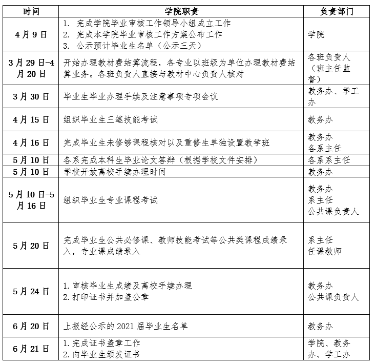 (一)于4月9日前完成学院毕业审核工作领导小组具体工作安排及部署,确保毕业审核工作能够顺利准确完成。