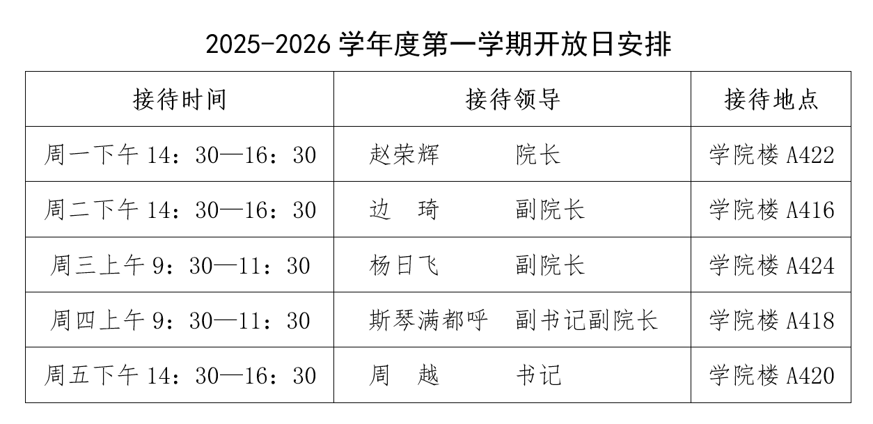 为进一步畅通学院领导与师生的沟通渠道,广泛听取师生合理意见和诉求,切实解决师生急难愁盼问题,经学院领导班子研究,决定开展院领导接待日活动。