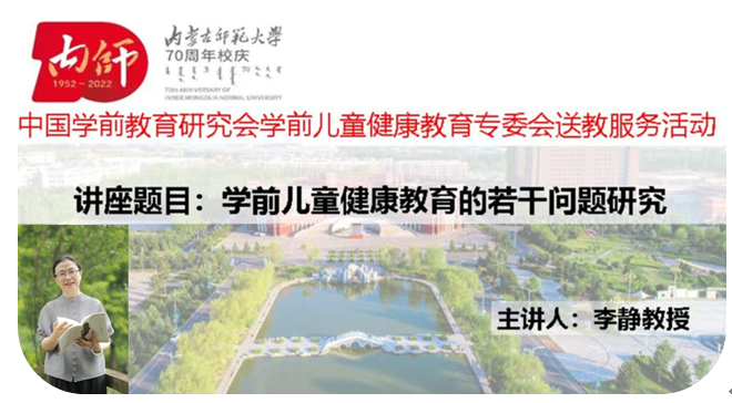 2022622日上午,特邀西南大学教育学部学前beat365正版唯一官网院长、博士生导师,中国学前教育研究会健康教育专业委员会主任李静教授进行了《学前儿童健康教育的若干问题研究》线上直播讲座,由朱晓红教授任主持人,beat365官网师生以及兴安盟职业院校等自治区内其他院校,以及呼和浩特市、扎兰屯市等部分幼儿园园长和教师参加。
